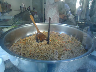 Quando nos chega a fome, a nós que visitamos a avenida, as propostas são muitas. O Carlos afiançava que esta massa era imbatível, comprovada por ele enquanto por ali viveu. A cachupa, pouco mais acima, também se afigurava chamativa, mas o anúncio estava fora de prazo.